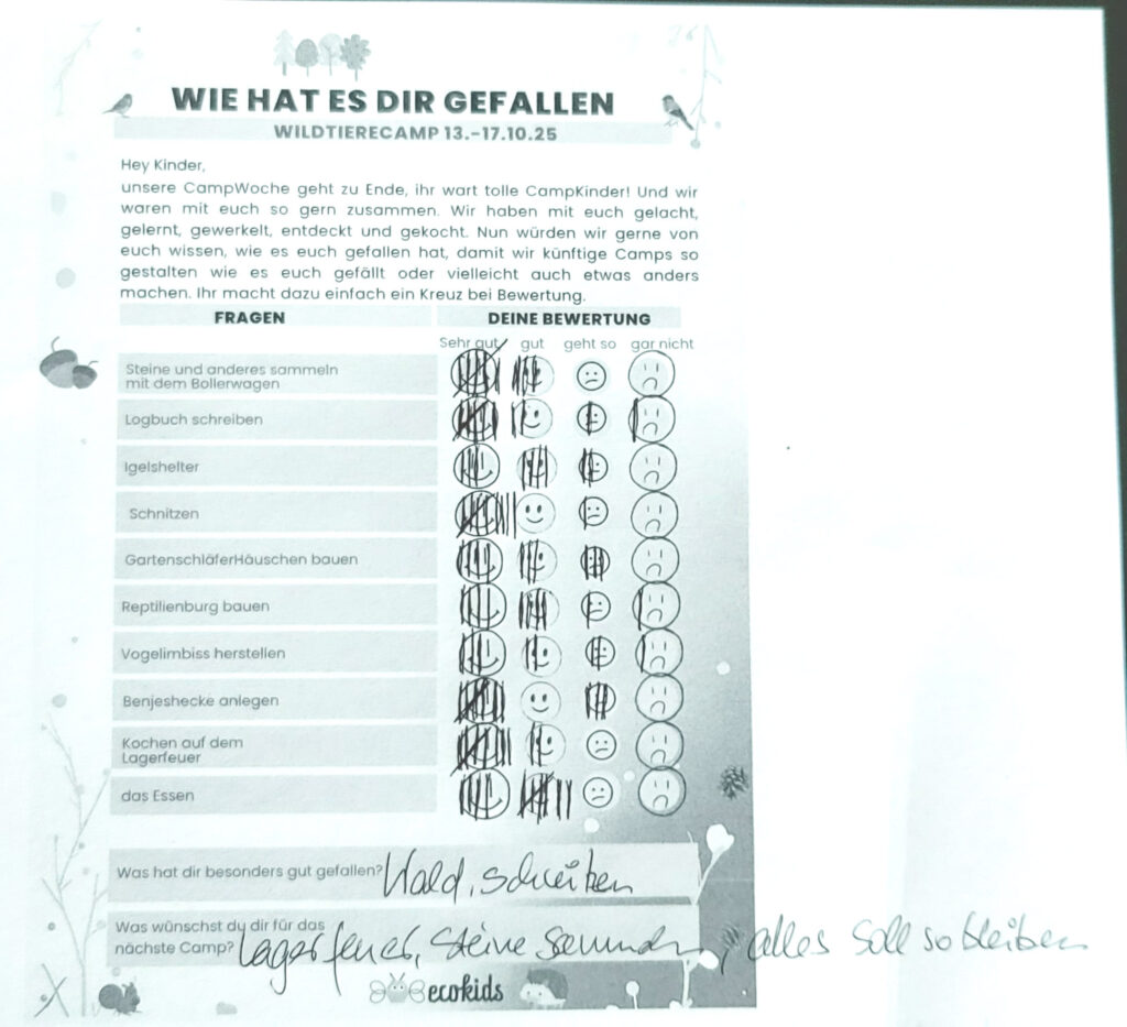 Auswertung des Wildtierecamps 13.-17.10.25